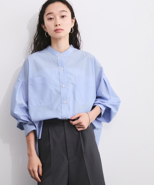 <POINT> 季節問わずに長く使えるバンドカラーシャツ 【素材感】 シーズンレスで取り入れやすい、ブロードのシャツ素材。 【デザイン・シルエット】 胸ポケットの付いた、オーバーサイズのバンドカラーシャツ。 襟元はもたつかず、すっきり見える今シーズン人気のバンドカラー仕様。 袖口のカフスは、そのままでも折り返しても。きゅっとたくし上げて、袖のボリュームを引き立てるのも素敵な一着。 【カラー】 ブラックピンスト・ブラック系・ブルーピンスト・パープル系の4色展開 【おすすめのスタイリング】 1枚ではもちろん、暑い時期には軽い羽織りとしてもぜひ。涼しい季節には、ニットのインナーとしてレイヤードを楽しむスタイルもおすすめ。ボトムにインしたりアウトにしたりと楽しんで。 ---------------------------- 裏地:なし 光沢感:なし 透け感:なし 伸縮性:なし 生地の厚さ:普通 手洗い可 ----------------------------- 【モデル着用サイズ】モデル身長:161cm 着用サイズ:F ※撮影時の光、お使いのモニター環境によって色の見え方が違う場合がございます。 ※画像の商品はサンプルです。 実際の商品と仕様、加工、サイズが若干異なる場合がございます。