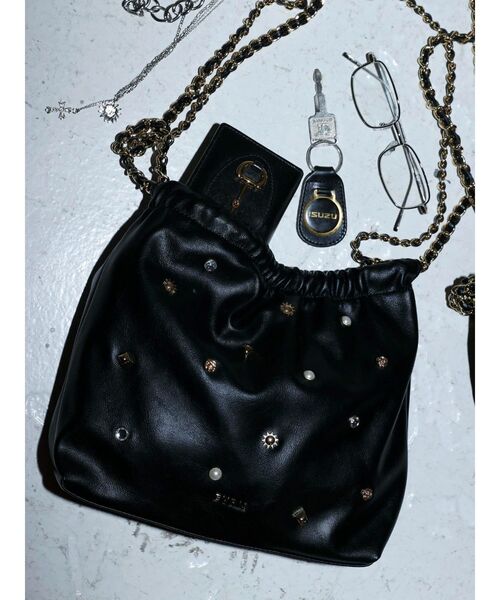 EVRIS(エヴリス)で人気のチェーンショルダーバッグの今季バージョンです。様々なデザインのスタッズを散りばめたEVRISらしいデコラティブなデザインになっています。チェーンも2本ついており、肩がけしたときも華やかな印象になります。■ミニバージョンもあります!>>スタッズチェーンミニショルダーBAG