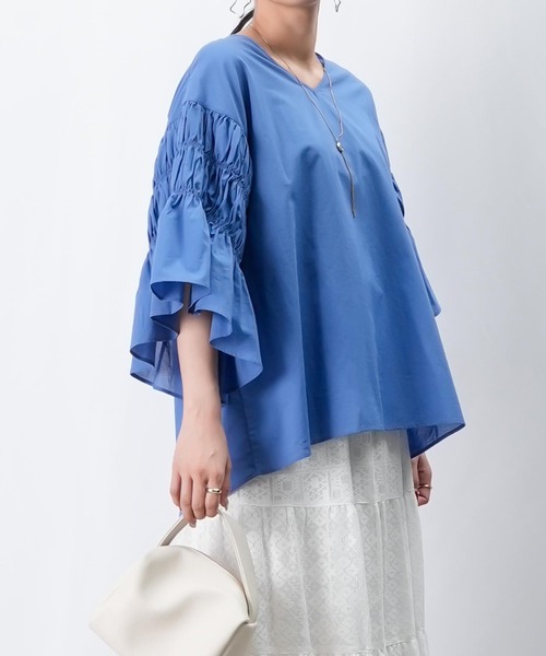 2025 Autumn & Winter【フレアー袖が可愛らしいブラウス】◆Design袖にシャーリングゴムを入れたフレアー袖ブラウス。長めの袖丈が二の腕まわりをカバーしてくれ、ゆったりしたシルエットで体型カバーも叶います。夏の終わりから秋にかけて活躍してくれる一枚です。◆Fabric・コットン100%の薄手のボイル生地・通気性が良く、シャリ感のある風合い◆color・ブルー、ベージュ、ブラックの3色展開です。◆Styling・デニムにサンダルを合わせて爽やかなカジュアルスタイルに。・イージーパンツを合わせてラフなスタイルに。・フレアスカートやレーススカートを合わせてフェミニンに。--------------------------------生地の厚さ:中間透け感:なし伸縮性:なし光沢感:なし裏地:なし洗濯:手洗い可--------------------------------【お買い物をよりお楽しみいただくために】〇商品のお気に入り登録完売カラーの再入荷や、完売間近の通知、セールの通知を受けることができます。〇ブランドのお気に入り登録新商品や再入荷など、いち早くブランドのお得な情報を受け取ることができます。【♡をクリック!ご登録お願いします!】