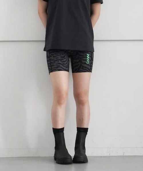 Active ultra high waist shorts (アクティブ ウルトラ ハイウェスト ショーツ)このアィティブウルトラハイウエストショーツは、速乾素材と認定リサイクルナイロンの混紡で作られています。体にフィットするシルエットで、グリーンのGANNI Activeロゴ、フラットロックシームのディテール、ハイライズウエストバンドに隠しポケットが付いています。GANNI (ガニー)GANNI(ガニー)は、コペンハーゲンを拠点とし、クリエイティブディレクターの Ditte Reffstrup(ディッテ レフストラップ)とファウンダーの Nicolaj Reffstrup(ニコライ レフストラップ)の夫婦により2009年に始動。北欧の新しいスタイル「SCANDI 2.0」を提唱。人々のコミュニティーの構築を目指すとともに、コレクション内では、認証の取れたオーガニック素材、リサイクル素材を70%以上使用し、地球環境への負荷の最小化に努め、社会と環境に貢献。2022年9月にはSDGsに代表される17の目標に基づき評価され、国際的な承認である【B Corp】を取得。2020 年には、People(男女平等、ダイバーシティー、インクルージョンなどに対する項目)、Planet(地球環境に関する項目)、Product(責任のある生産に関する項目)、Prosperity(持続可能なファッション産業構築に関する項目)を4つの柱とした 44 項目からなる「GANNI Gameplan」を掲げている。DESIGNER : ディッテ レフストラップ/ニコライ レフストラップ