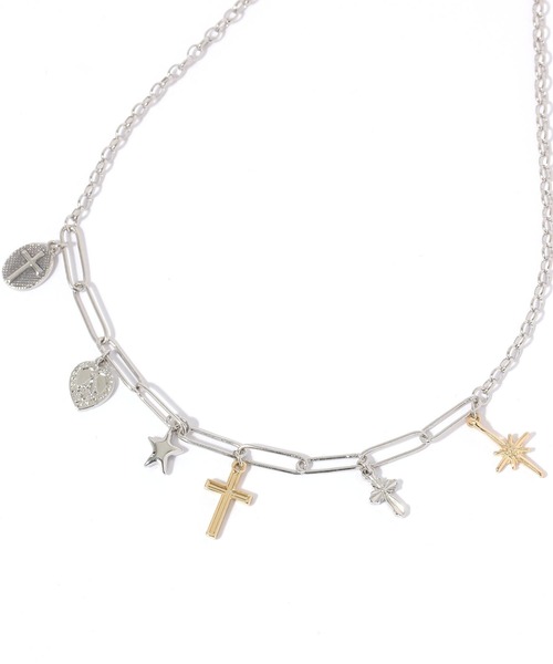ーーー様々なモチーフがゆらゆらと揺れ目を惹くネックレス。サイズの違うコインやクロスデザインなどが組み合わさった遊び心のあるデザインです。カジュアルな普段使いはもちろん、パーティーシーンなどにもおすすめです。ーーー-------------------------------------≪お買い物をよりお楽しみいただくために≫◆商品のお気に入り登録(ハートマークをクリック)完売カラーの再入荷通知や、完売間近の通知、セールの通知も受けることができます。◆ブランドのお気に入り登録新商品や再入荷など、いち早くブランドのお得な情報を受け取ることができます。-------------------------------------