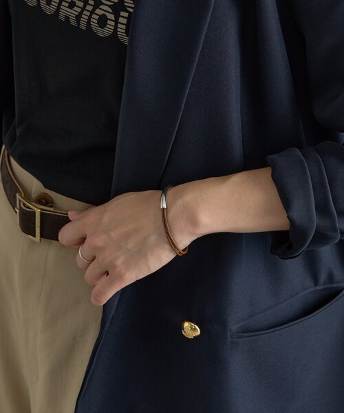 程よく存在感があるコードバングル●デザインレザーと金具のコンビネーションがポイントになったブレスレットコードの輪の部分を金具にひっかけて使用する着脱しやすいデザインです。シルバーの金具が程よく存在感があり手元のアクセントに。どんなテイストにも合わせやすく、幅広いコーディネートで活躍してくれるアイテムです。●サイズ全長:18.5cm幅:0.6~0.2cm●素材合金牛革真鍮--------------------------------------------------------------------------------【お買い物をもっと便利に楽しく♪】『♡』をクリックでお気に入り登録✓「商品のお気に入り登録」で・・・ラスト1点や再入荷の通知が届きます。登録して頂いた商品だけが対象となる、あなただけのタイムセールが開催されることも!✓「ブランドのお気に入り登録」で・・・新商品や再入荷など、いち早くブランドのお得な情報を受け取ることができますので、ご登録をおすすめします!--------------------------------------------------------------------------------【注意点】※画像の商品は光の照射や角度、お使いのモニター環境により、 実物と色味が異なる場合がございます。※入荷状況により、お届け予定が前後する場合があります。※お客様への発送が店頭販売より遅れる場合もあります。※追加生産商品は、一部の店舗、通販で販売中の場合がございます。 予めご了承下さい。----------------------------------------------------------------------