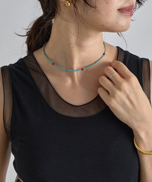 カラービーズで首元が華やかに●デザインつけるだけで華やかな印象のショートネックレス水色のビーズに赤色のビーズをアクセント使いした遊び心あるデザインです。引き輪、アジャスターチェーン部分はSV925の素材を使用。金属アレルギーの方も比較的安心してお使いいただけます。今季トレンドのブラウンのお洋服とのスタイリングもおすすめとなっております。●サイズ全長:37cm+アジャスター5cm●素材ガラスSV925--------------------------------------------------------------------------------【お買い物をもっと便利に楽しく♪】『♡』をクリックでお気に入り登録✓「商品のお気に入り登録」で・・・ラスト1点や再入荷の通知が届きます。登録して頂いた商品だけが対象となる、あなただけのタイムセールが開催されることも!✓「ブランドのお気に入り登録」で・・・新商品や再入荷など、いち早くブランドのお得な情報を受け取ることができますので、ご登録をおすすめします!--------------------------------------------------------------------------------【注意点】※画像の商品は光の照射や角度、お使いのモニター環境により、 実物と色味が異なる場合がございます。※入荷状況により、お届け予定が前後する場合があります。※お客様への発送が店頭販売より遅れる場合もあります。※追加生産商品は、一部の店舗、通販で販売中の場合がございます。 予めご了承下さい。----------------------------------------------------------------------