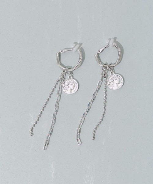 【コイン&チェーンでトレンド感アップ】●クラシカルなコインモチーフ●揺れるデザインで華やかさアップ●カジュアルにもきれいめにもコインモチーフと異なる種類のチェーンが組み合わさったロングイヤリング。コインチャームやチェーンが揺れて顔周りに動きをプラス。シンプルな装いをぐっとおしゃれに格上げし、トレンド感を与えてくれるアイテムです。【2025 Autumn/Winter】【25AW】※メッキ製品(特に銀メッキ)は変色しやすいため、こまめなお手入れで防止してください。長期放置やスプレー香料などの同時使用は、特にお避けください。※メッキ製品は、アレルギー体質の方や体調が低下している方など、かぶれることがあります。肌に異常を感じた時はご使用をお止めいただき専門医にご相談ください。※アクセサリーは壊れやすいものです。取り扱いに注意していただき大切にご使用いただけるようお願い申し上げます。重量(片耳) : 約3.5g※商品画像は、光の当たり具合やパソコンなどの閲覧環境により、実際の色味と異なって見える場合がございます。予めご了承ください。※商品の色味の目安は、商品単体の画像をご参照ください。▼お気に入り登録のおすすめ▼お気に入り登録商品は、マイページにて現在の価格情報や在庫状況の確認が可能です。お買い物リストの管理に是非ご利用ください。-