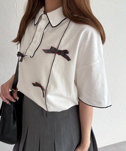 -アイテム説明-【ランダムにチェックリボンが付いた一癖ポロTシャツ】ポロTシャツにメローを施したリメイク風デザイン。トレンドのリボンが全面に付いた、1枚でインパクトのある夏服です。リボンのチェック柄や色をボトムスで拾った統一感のあるコーディネートがオススメ!ゆったりとしたサイズ感で裾にスリットがあるので、イン・アウトスタイル問わずに着用しやすい仕様です。-コーディネート‐デニム合わせでカジュアルに、スカート合わせでレディライクに着用していただけます。トレンドのキャミワンピースやバルーンスカートを合わせるのも◎小物にはナップサックやリカバリーサンダルがおすすめ。ーーーーーーーーーーーーーーーー透け感:オフホワイト・アイボリーのみ目立たない程度の透け感あり裏地:なし伸縮性:あり光沢感:なし生地の厚さ:普通ーーーーーーーーーーーーーーーー-スタッフ着用コメント-身長:155cm/体型:普通/普段サイズ:Mサイズ/着用サイズ:Fサイズサイズ感:ゆったりとしたサイズ感素材感:一般的なTシャツ地着心地:ストレスフリーに着用していただけます-kutirブランドコンセプト-"トレンド×kutir oroginal"サイズやカラー豊富に展開中!古着らしさにトレンドを取り入れた new style(WEB限定)※サイト上のカラー名と、お届け商品に記載されているカラー名が異なる場合がございます。※ご覧いただく環境により、実物と色味が異なって見える場合がございます。ご了承ください。【お買い物をよりお楽しみいただくために】▼商品のお気に入り登録(ハートマークをクリック)完売カラーの再入荷通知や、ラスト1点の通知、セールの通知も受けることができます。▼ブランドのお気に入り登録新商品や再入荷など、いち早くブランドのお得な情報を受け取ることができます。