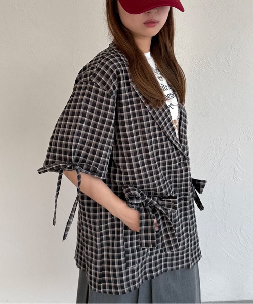 -アイテム説明-【ダブルリボンがポイント♪夏も涼しく着用可能なサマージャケット】表面感があり通気性のある夏服にぴったりなシアサッカー生地を使用した、テーラード柄のサマージャケット。袖口とポケット部分にリボンが使用され、ゆったりとオーバーサイズながら、レディライクな印象に◎-コーディネート‐キャミワンピやスカート合わせでレディライクに、タンクトップやキャミソールなどのインナーにデニムなどのパンツ合わせでカジュアルに着用していただけます♪トレンドのノースリブトップスやビスチェをチラ見せしたり、小物はナップサックやリカバリーサンダルを合わせると◎夏服に大活躍できちゃいます!ーーーーーーーーーーーーーーーー透け感:シアサッカー素材で若干の透け感あり裏地:なし伸縮性:なし光沢感:なし生地の厚さ:普通ーーーーーーーーーーーーーーーー-スタッフ着用コメント-身長:155cm/体型:普通/普段サイズ:Mサイズ/着用サイズ:Fサイズサイズ感:ゆったりとしたサイズ感素材感:通気性の良いシアーサッカー生地着心地:ストレスフリーに着用していただけます-kutirブランドコンセプト-"トレンド×kutir oroginal"サイズやカラー豊富に展開中!古着らしさにトレンドを取り入れた new style(WEB限定)※サイト上のカラー名と、お届け商品に記載されているカラー名が異なる場合がございます。※ご覧いただく環境により、実物と色味が異なって見える場合がございます。ご了承ください。【お買い物をよりお楽しみいただくために】▼商品のお気に入り登録(ハートマークをクリック)完売カラーの再入荷通知や、ラスト1点の通知、セールの通知も受けることができます。▼ブランドのお気に入り登録新商品や再入荷など、いち早くブランドのお得な情報を受け取ることができます。