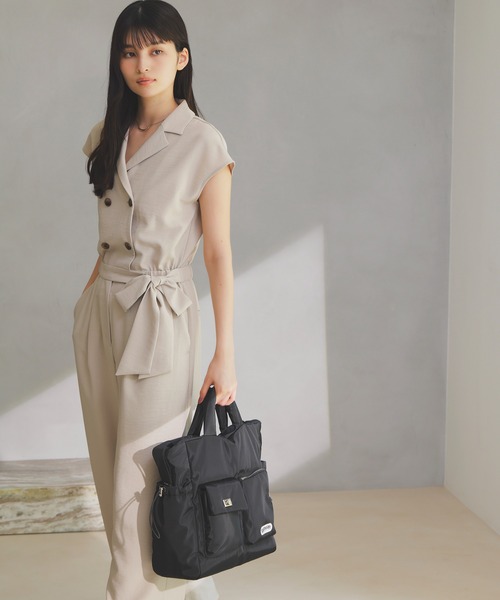 スタイリッシュで1枚で様になる◎オンオフで大活躍のオールインワン。◆2025秋冬◆<POINT>・リラックス感のあるジャケットディテールがスタイリッシュ。・ウエストゴムでリラックスして着ていただます。・テロっとした素材で暑い夏にぴったりです。【デザイン・シルエット】ダブル釦でスタイリッシュな雰囲気が素敵なオールインワン、かっちりしすぎないようにウエストをゴムにし柔らかい素材を使うことでオンオフどちらでも使えるデザインにしました。パンツのシルエットはリラックス感のあるストレートのシルエットです。【素材】エアタン加工を施した表面感のある素材で、さらっとした肌触りで暑い時期も快適に過ごせる素材です。【カラー】ブラック、ベージュの2色展開。【おすすめのスタイリング】1枚でさらっとスタイリングして頂きたいです。スニーカーがビーチサンダルでカジュアルに着ても◎。華奢なサンダルなどで綺麗めにスタイリングするのもおすすめです。-----------------------------裏地:なし光沢感:なし透け感:なし伸縮性:なしウエスト:フロント部分以外ゴムファスナー:フロント部分ありポケット:あり、バックポケットはフェイクボタン:あり(ボタン~ファスナー。股下まで開閉可)生地の厚さ:普通、薄手、やや薄手、やや厚手、厚手その他仕様:ウエスト内側に1つボタンあり季節:春、夏、秋 -----------------------------【モデル着用サイズ】モデル身長:165cm、着用サイズ:F※画像の商品はサンプルです。 実際の商品と仕様、加工、サイズが若干異なる場合がございます。※画像によっては実際の色味と異なる場合があります。正しい色味は生地アップ画像をご確認ください。