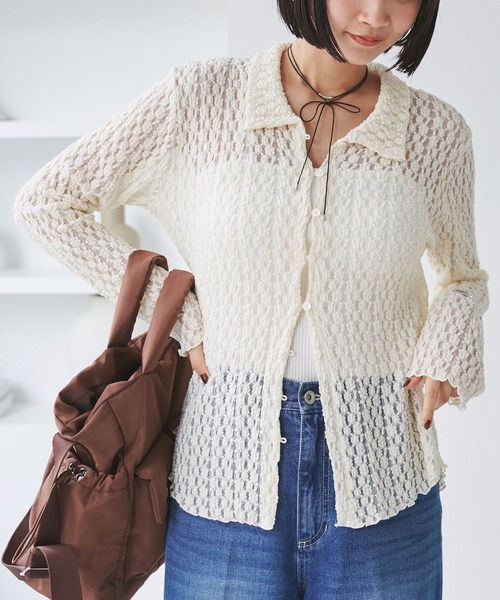 表面感が華やかなレース素材のカットソーカーディガン。◆2025秋冬◆ <POINT> ・トレンド感のあるレースカットソー素材のカーディガン ・細めのシルエットがスタイルアップを叶えます! ・襟付きで程よくきちんと感のあるトップス使いにもぴったりなアイテムです。 【デザイン・シルエット】 襟付きフロント開きデザイン。カットソーなので程よく身体に沿って女性らしいシルエットを叶えます。 ウエストや袖でシェイプしているのでフォルムにメリハリがあるアイテムです。形はシャツ型ですがレースカットソーなのでよりフェミニンな印象に。気温調節にもピッタリです! 【素材】 レースカットソー素材。レースは小花柄で主張が激しすぎないので普段使いにピッタリです!程よい伸縮性と柔らかさで肌に当たってもストレスなくご着用いただけます。 【カラー】 ブラック、キナリ、ブラウン系の3色。肌なじみが良く、着回しのきくカラーをセレクトしました。 【おすすめのスタイリング】 美easyシリーズやタックパンツなどキレイめ素材のボトムと好相性。デニムパンツなどでカジュアルにスタイリングしていただくのもおすすめ。 コンパクトなトップスカーデなのでボトムにボリュームを持たせるとバランスよくご着用いただけます。きれいめな印象はキープしつつ、どこか抜け感のある“今っぽフェミニン”が完成する一枚です。 ----------------------------- 裏地:なし 光沢感:なし 透け感:あり(レース) 伸縮性:あり ポケット:なし ボタン:あり(開閉可) 生地の厚さ:薄手 季節:春、夏、秋 ----------------------------- 【モデル着用サイズ】 全色モデル身長:165cm、着用サイズ:F ※画像の商品はサンプルです。 実際の商品と仕様、加工、サイズが若干異なる場合がございます。 ※画像によっては実際の色味と異なる場合があります。正しい色味は生地アップ画像をご確認ください。