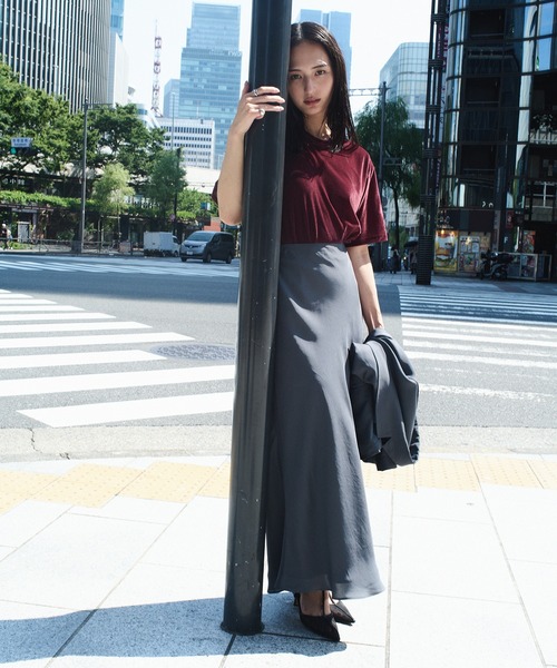 美しいドレープが魅力。すっきり見えと着心地の良さを兼ね備えた、大人のマーメイドスカート【デザイン・シルエット】腰回りはすっきりとしたシルエットで、裾に向かって広がるマーメイドラインが特徴のスカート。フロント部分はフラットなウエストデザインにし、後ろウエストのみゴム仕様にすることで、きちんと感と快適さを両立しています。【おすすめのスタイリング】同素材のジャケットとのセットアップスタイルや、キュプラシルクのブラウスにフェイクファージレを重ねたコーディネートもおすすめです。【素材】アセテートを使用したツイル素材。アセテートならではの上品な光沢と美しいドレープが、エレガントな雰囲気を演出。さらに、特殊加工によりふくらみ感と程よいシワ感を持たせた、表情豊かな素材です。----------------------------透け感:なし裏地:あり伸縮性:なし光沢感:あり生地の厚さ:薄手ポケット:なし開き方:ファスナー----------------------------【モデル情報】モデル身長:165cm 着用サイズ:38(ミディアムヘア)モデル身長:174cm 着用サイズ:38(ロングヘア)【シアーエアリー シリーズ】同素材でセットアップでも着用できるシアージャケット(品番:GGV35120)シアーエアリー マーメイドスカート(品番:GGC35170)がございます。※画像の商品はサンプルです。実際の商品と仕様、加工、サイズが異なる場合がございます。※撮影場所やライティング、お使いのモニター環境によって色の見え方が異なる場合がございます。※商品のカラーは画像の色味をご参照ください。動画は仕様説明のため、色味が実物と異なる場合がございます。