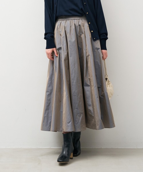毎回ご好評頂いてるタックギャザースカート。 今年はシーズンムード高まるカラー展開で登場。 まだまだ暑い時期、旬のスタイリングを楽しみたい時におすすめのスカートです。 Tシャツ合わせはもちろん、ロンTやニットとトップスを選ばずにレディーな雰囲気に仕上げてくれるので、早い時期から活躍してくれること間違いなしです。 【fabric】 元々シルク生産していたイタリアの老舗メーカーが織り上げた高密度のタフタ素材を使用。 シャンブレーのタフタは、光沢に奥行きがあり上品な雰囲気があります。 とても軽い素材で軽やかな着心地です。 -------------------------------------- 透け感:なし 裏地:あり 伸縮性:なし 光沢感:あり 生地の厚さ:普通 ポケット:あり -------------------------------------- 水洗い可 *詳しくは商品の洗濯表示にてご確認をお願い致します。 【coordinate】 奥行きのある色合いのスカートはボリュームのあるシルエットでどんなトップスを合わせてもレディライクな着こなしが完成します。 軽い素材なので暑さ残る時期から秋の空気をまとった旬なスタイリングをお楽しみいただけます。 絶妙な丈感でスニーカーからロングブーツまで合わせていただけます。 *商品画像はできる限り実物の色に近づけるよう徹底しておりますが、お使いのデバイスのモニター設定、お部屋の照明等の閲覧環境により実際の色味と異なって見える場合がございます。 *画像の商品はサンプルです。実際の商品と仕様、加工が若干異なる場合があります。予めご了承くださいませ。 ▼商品のお気に入り登録 お気に入りアイテムの値下げ・再入荷・在庫1点などの通知を受け取ることができます。 ▼ブランドのお気に入り登録 新商品や再入荷、クーポン配布などのお得な情報を受け取ることができます。