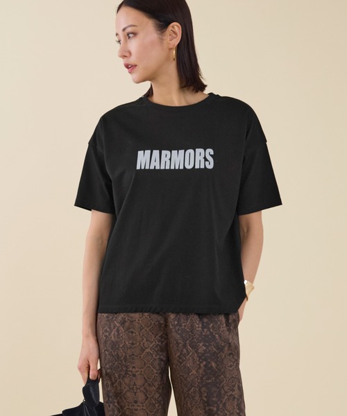 目を惹くフロッキープリントがポイントのロゴTシャツ。立体感のあるプリントは、柔らかいフロッキー加工による独特の質感でシンプルなロゴが一気にスタイリッシュに。着回しのしやすいストレートラインでどんなボトムスとの相性もよく、コーディネートの幅がぐんと広がります。詰まり過ぎないクルーネックでアクセサリーも映えるシルエット。袖幅も広すぎず、大人な雰囲気のTシャツとしてお楽しみいただけます。【fabric】厳選された超長綿を贅沢に使用しています。目面がきれいで自然な強い発色を生み出した素材を使用しています。・接触冷感/UVカット機能付き【logo color】WHITE:WHITE×BLACKBEIGE:BEIGE×BROWNBLACK:BLACK×WHITE--------------------------------------透け感:WHITEのみややあり裏地:なし伸縮性:あり光沢感:なし生地の厚さ:普通--------------------------------------水洗い可素材特性:接触冷感/UVカット*詳しくは商品の洗濯表示にてご確認をお願い致します。【coordinate】ストレートシルエットで一枚で着るのはもちろん、ワンピースのインナーとしてお使いいただいても、身幅が広すぎないのでごわつきが気になりません。フロントのフロッキープリントがシンプルなコーディネートのワンポイントになります。きれいな発色の素材を使用しているので、ワントーンコーデを組んでみても◎ジャケットなどのインナーに合わせるのもおすすめです。--------------------------------------【marmors / マルモア】《 marmors 》 マルモアとは、1人1人個性の違う、自立した女性のように色や模様がいろいろで一つとして同じものはなく、きめ細やかで、研磨すると美しい光沢をもつという性質のある大理石のローマ語【marmor】から由来。光のなかできらめく結晶石を意味し、美・権威・永遠を象徴する。クリーンな洗練カジュアルをコンセプトにcomfortableな着心地・風合いのminimal なアイテムとメンズライクなアイテムを融合し女性らしいstylingを提案。その人の新たな定番となり、大切に永く愛用していただけるような日常着をめざします。--------------------------------------*商品画像はできる限り実物の色に近づけるよう徹底しておりますが、お使いのデバイスのモニター設定、お部屋の照明等の閲覧環境により実際の色味と異なって見える場合がございます。*画像の商品はサンプルです。実際の商品と仕様、加工が若干異なる場合があります。予めご了承くださいませ。▼商品のお気に入り登録お気に入りアイテムの値下げ・再入荷・在庫1点などの通知を受け取ることができます。 ▼ブランドのお気に入り登録新商品や再入荷、クーポン配布などのお得な情報を受け取ることができます。