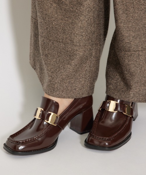 【存在感溢れるチェーンベルトがポイントのスクエアトゥローファー】 ■ポイント スクエア状のゴールドパーツにベルトが通ったデザインがクールな印象を与えるローファー。 一見ローファーはカジュアルなイメージですが、こちらは光沢感のあるガラス合皮を採用しツヤ見えするので女性らしく綺麗めに履いていただけます。 ■ディテール 安定感のある太めのヒールに高さがあるので、自然とスタイルアップが叶います。 また爪先が細めのスクエアトゥのためシャープさもあり、甲のところに大きめのベルトがくるバランスにも拘りました。 ベルトディテールが今時さもあっておすすめです。 ■スタイリング フルレングスのパンツは相性抜群ですし、ミニ丈のワンピースやスカート、ショートパンツにもソックスを合わせてスタイリングするのもおすすめです。 ■生地 透け感:なし 裏 地:あり 伸縮性:なし 光沢感:あり 厚 さ:あり ■商品のお気に入り登録 お気に入りアイテムの再入荷・在庫1点などの通知を受け取ることができます。 ■ブランドのお気に入り登録 新作アイテムの入荷や人気アイテムの再入荷、おすすめトピックスなど、いち早くブランドの情報を受け取ることができます。 [注意事項] ※弊社管理上のカラーを表記しており、タグのカラー表記と異なる記載となっている場合がございます。 ※商品画像の色味は、屋外や屋内の光の照射や角度により実物と色味が異なる場合がございます。 ※着用、お取り扱いの際は、アテンションタグをご確認ください。 rienda BRAND CONCEPT 女性らしさに大人なエッジを効かせ 艶やかさに人を魅了させる そんなセンシュアルなデザインを表現 ~The beauty of being yourself is essential~ こちらの商品はrienda独自の採寸方法となっています。本サイトのサイズガイドと採寸方法が異なる場合がありますのでご了承ください。