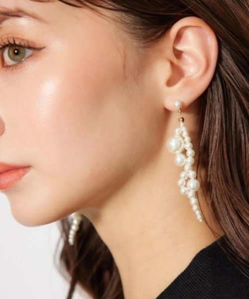 【ランダムなパール使いで存在感を演出するピアス】 ■ポイント ランダムな大きさのパールをループ状に連結させ華やかに決まるように仕上げたピアスです。 ■ディテール 左右でポイントになる大きいパールをアシンメトリーになるようにしたことでデザイン性を高めて、キャッチの先端にもパールを施し統一感を出しました。 ■スタイリング デイリーユースからデートや女子会、結婚式のようなオケージョンにもお勧めです。 ■商品のお気に入り登録 お気に入りアイテムの再入荷・在庫1点などの通知を受け取ることができます。 [注意事項] ※画像の商品はサンプルです。実際の商品と仕様、加工が若干異なる場合があります。 ※画像の商品は光の照射や角度、お使いのモニター環境により、実物と色味が異なる場合がございます。 ※着用、お取り扱いの際は、アテンションタグをご確認ください。 こちらの商品はrienda独自の採寸方法となっています。本サイトのサイズガイドと採寸方法が異なる場合がありますのでご了承ください。