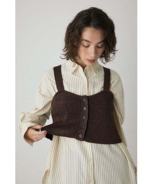 ■ストローヤーンビスチェ■ポイント素材感が特徴的なニットビスチェ。■ディテールフロントは釦あきになっています。胸元をキレイにみせるカッティングと、体のラインをきれいに見せるために、編み柄を入れています。■スタイリングお手持ちのTシャツに足すだけで、秋を感じさせてくれる1枚。合わせるインナーで、長いシーズン着用いただけます。■生地藁のような、ナチュラルさを感じる糸を使用。透け感:なし裏 地:なし伸縮性:あり光沢感:若干あり[注意事項]※画像の商品はサンプルです。実際の商品と仕様、加工が若干異なる場合があります。※画像の商品は光の照射や角度、お使いのモニター環境により、実物と色味が異なる場合がございます。※着用、お取り扱いの際は、アテンションタグをご確認ください。「crie conforto(クリー コンフォルト)」とは「心地よさを創造する」という意味をもっています。大人の女性をコアターゲットに、シルエットや着心地にこだわり、程よくトレンドを取り入れながらも「ありのままの自分らしい、無理のない自然体である心地よさ」を提案します。▼商品のお気に入り登録お気に入りアイテムの値下げ・再入荷・在庫1点などの通知を受け取ることができます。▼ブランドのお気に入り登録新商品や再入荷、セール、クーポン配布などお得な情報を受け取ることができます。オフィスカジュアル 秋服 Xmas、結婚式、二次会、パーティー、デート、フォーマル、披露宴、お呼ばれ、成人式、同窓会、女子会、忘年会、新年会、謝恩会、演奏会、発表会、セレモニー、オフィス、デイリー