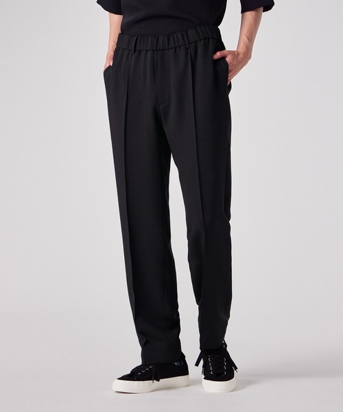 【JAPAN LIMITED PROJECT】 超軽量なドライテクスチャーを使用した、テーパードパンツ。 素材には軽量なポリエステル素材を使用。シワになりづらく家庭での洗濯も可能な機能性にもこだわったアイテム。 ウエストギャザー裏には、ポール・スミスがこれまでに所有してきた歴代の自転車の色を重ねた「スポーツストライプ」をアクセントにしました。 スタイルは程良いリラックス感のあるレギュラーシルエットになり、トレンド感のあるモダンな仕上がりが魅力。 同素材のジャケットやトップスなどを合わせたセットアップスタイルもおすすめです。 ________________________ [お買い物をお楽しみ頂くために] □商品のお気に入り登録 完売カラーの再入荷通知やラスト1点の通知など、商品情報をお届けします。 □ショップ・ブランドのお気に入り登録 新商品や再入荷など、いち早くブランドの最新情報をお届けします。 ________________________