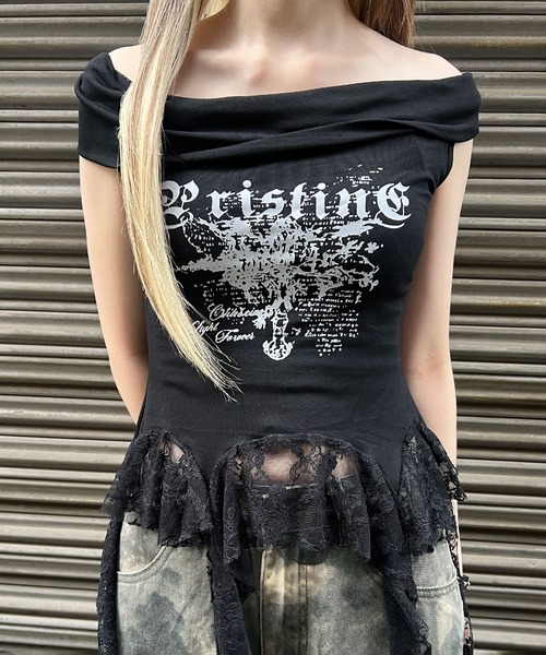 【今季大注目フリルトップ】ゴシックな印象のサイドレースが目を惹くフリルデザイントップ◎ショート丈×オフショルダーなのでボリュームのあるボトムスと合わせて華奢見えコーデがおすすめ。■detail・オフショルダー・サイドレース・フリル・プリント・ワンサイズ 【商品画像について】※画像はサンプルです。実際の商品と仕様、加工、サイズ、カラーが若干異なる場合がございます。また、撮影場所や照明の照射・角度、お使いのモニター環境によりお色味が異なる場合がございます。予めご了承ください。《お気に入り登録》・「商品のお気に入り登録」で再入荷通知や、ラスト1点の通知、セール通知も受け取ることができます。・「ブランドのお気に入り登録」で新商品や再入荷など、いち早くブランドのお得な情報を受け取ることができます。【Figments/フィグメンツ】ファッション、音楽、カルチャー。時代とともに変化を楽しむ者たちに向けた、Realityを覆し、常識を壊すユニセックスファッションブランド。