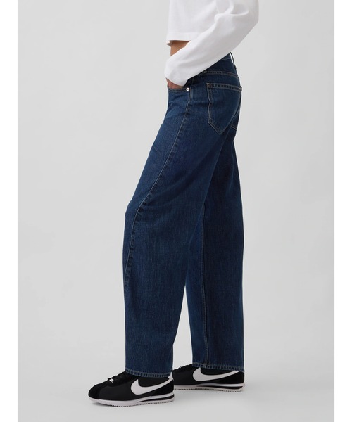 腰上丈のルーズフィットクラシックリジッドデニム。 今年らしいスタイリングを作るバギーデニム。ゆるっとルーズなサイズ感が大人の抜け感とラフさを程よく演出。 フィット: フルレングスのバレルデニム、ウエストまわりは程よくフィットし脚まわりはゆとりのあるリラックスフィット、裾に向かって細くなるテーパードシルエット 生地: コットン100% ストレッチ性の有無: ノンストレッチはき込むほどに表情を増すオーセンティックデニム。 愛用しながらなじませて、自分だけのデニムに育てることができます。 股上: ハイライズ ルック: 5ポケットスタイル、バレルデニム、ダークカラー ディテール: ジッパーフライ、5ポケットスタイル よりサステナブルなコットン: このデニムはリサイクルコットンを5%使用し、リサイクル素材を使用することで、バージン素材に比べて使われる原材料と生み出される廃棄物の量を削減しています。 サステナビリティ: 独自の洗浄技術「ウォッシュウェル」を使って生産しています。従来の洗浄方法と比較して水の使用量を少なくとも20%削減するウォッシュウェルは2016年に導入され、これまで10億リットル以上の水を節約しています。 *商品タグに記載の価格とサイト上の販売価格が異なる事があります。 【Gap ギャップ】1969年にアメリカ・サンフランシスコで創業以来、世界的なカジュアルファッションブランドとして、常にモダンなアメリカンカジュアルを提案し続けています。 ※商品画像は、光の当たり具合やパソコンなどの閲覧環境により、実際の色味と異なって見える場合がございます。予めご了承ください。