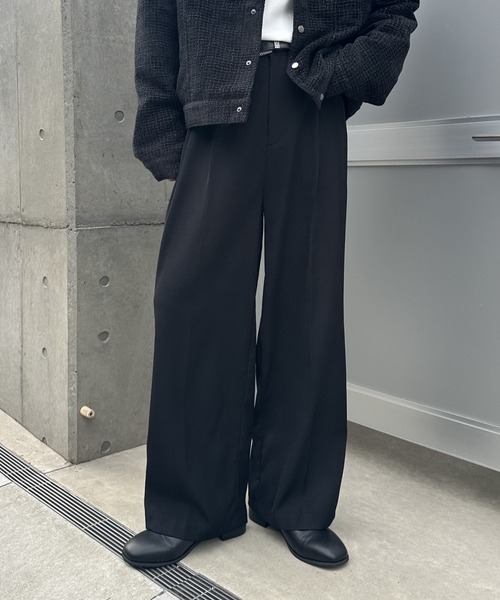 【品よくキマる、ゆるっとシルエット。2タックスラックス登場】上品さとリラックス感を両立した2タックワイドストレートスラックス。腰まわりにゆとりを持たせる2タック仕様と脚のラインを拾わないワイドストレートの美シルエットが特徴。体型カバーにも効果的で穿くだけでこなれた印象に。落ち感のある素材を使用しており、シワになりにくく軽やかな穿き心地。ウエストはバックゴム仕様でストレスフリーながらもスッキリ見えするデザインです。【商品ポイント】・落ち感素材で上品見え・ゆったり穿ける2タック仕様・ストレスフリーな穿き心地----------------------------------------------------■商品特徴洗 濯 方 法 :手洗い可裏 地 :なし透 け 感 :なし伸 縮 性 :なし光 沢 感 :ややあり生地の厚さ:普通----------------------------------------------------■素材本体: ポリエステル97%, ポリウレタン3%別布部分: ポリエステル80%, 綿20%----------------------------------------------------※着用、お取り扱いの際は、商品についている品質表示とアテンションタグを必ずご確認下さい。※商品タグに記載されている商品名がWEBでの表記名と異なる場合があります。※実際の商品と仕様、加工、サイズが若干異なる場合がございます。※照明の関係により、実際よりもやや明るく見える場合がございます。またパソコンなどの環境により、若干製品と画像のカラーが異なる場合もございます。予めご了承くださいませ。【お気に入り登録】してお得な情報をCHECK!!・「商品のお気に入り登録」で再入荷通知や、ラストの通知、セール通知も受け取ることができます。・「ブランドのお気に入り登録」で新商品や再入荷など、お得な情報を受け取ることができます。