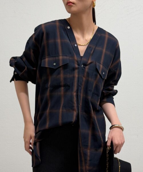 ふんわりシルエットのチェック柄シャツ■デザインVネックデザインでデコルテを美しく見せ、女性らしさをプラス。ネックレスとの相性も抜群です。ゆったりシルエットなので、リラックス感のある着心地、気になる体型もカバー。胸元のフラップポケットがデザインのアクセントに。■コーディネート1枚で着るのはもちろん、Tシャツやタンクトップの上からさらっと羽織るのもおすすめです。ボタンを留めてトップスとして、ボタンを開けてカーディガンとして、様々な着こなしが楽しめます。■素材・洗濯表記素材:綿100%洗濯表記:手洗い可●濃色と淡色は分けて洗って下さい。●中性洗剤を使用してください。●この製品は水洗いで多少縮みます。●濡れたままで長時間放置しないで下さい。●形を整えてから干してください。●アイロンはあて布を使用するようにして下さい。〈色移り・色落ち〉この商品は、摩擦(特に湿った状態での摩擦)や、汗や雨などで濡れた時は他の衣料や下着(特に白)物に色移りする場合がありますので、十分ご注意ください。クリーニングの際は、多少色落ちすることがありますので出来るだけ単品洗いをおすすめします。また、他の淡色物に色移りすることがありますので、すみやかに処理(脱水・乾燥)するようお願いいたします。以上の点を十分ご留意の上、お取扱い下さい。【♥をクリックでお得な情報をお知らせいたします 】完売カラーの再入荷やラスト1点の通知、セールの通知を受けとることができます。【ブランドのお気に入り登録】新商品や再入荷、いち早くセールやクーポンなどのブランドの情報を受けとることができます。生産の都合上、お届け時期が前後する場合がございます。システムの都合上、店舗より入荷が遅れる場合がございます。実際にお届けする商品と仕様やサイズが異なる場合がございます。照明や光の当たり具合で色味が違って見える場合があります。