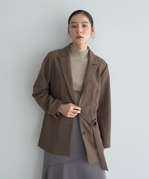 程よい厚みとハリ感のあるダブルクロスで仕立てたデザインジャケット。 アシンメトリーのDカン付きベルトがおしゃれなポイント。 ベルトを外してベーシックなジャケットとしても2wayでお楽しみいただけます。 スリムなラペルやフラップポケットなど、スタイリッシュなディテールがきれいめな一着。 オフィスシーンにも活躍し、モードにも合わせていただける汎用性の高いアイテムです。 同素材のパンツとセットアップスタイルもおすすめです。 透け感[なし] 生地の厚さ[普通] 光沢感[なし] 伸縮性[ややあり] 裏地[なし] ポケット[あり] <セットアイテム> ウエストデザインワイドストレートパンツ(07000782700) ※モデル着用画像は、光の当たり具合で色味が違って見える場合がございます。 ※お使いのモニター環境によって商品の色味が違って見える場合がございます。 ------------------------------------------- ●YECCA VECCA● (イェッカ ヴェッカ) 「大人のハッピーモードな着映え服」 毎日を自分らしく、ハッピーに過ごすことにポジティブな女性のためのリアルクローズ。キーワードは「遊び心のある、女性らしいモード服」でも「コンフォート」。 都会的で女性らしいムードを大切に着ていて心地よく、気持ちが上向きになるような遊び心のあるデザインウェアをラインナップ。 自分自身がわくわく出来る洋服で日常を最大限に楽しむ大人の為のスタイルを提案していきます。 ▼商品のお気に入り登録がおすすめです ▼ 商品ページ内のハートマークをクリック。完売時の再入荷や、最後の1点の通知、コーディネート画像がアップされたとき、お得なお値下げの際の通知を受ける事ができます。 【お知らせ】ページでも通知が確認できます。 -------------------------------------------