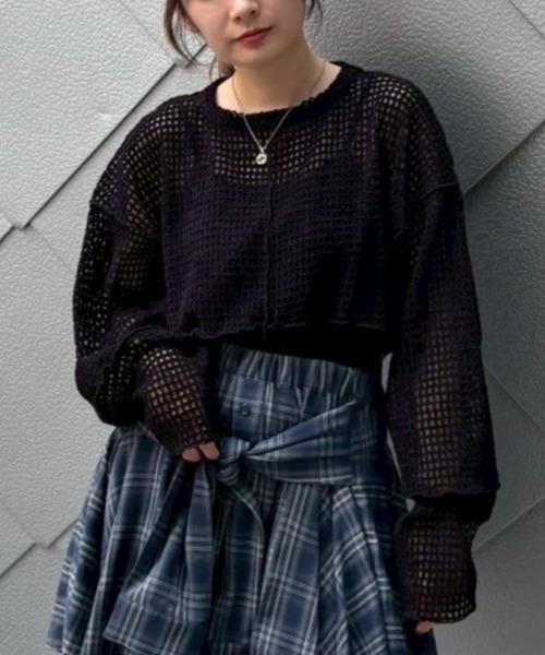 チュールにモール糸を格子状にして乗せた素材を使用したシアー感のあるトップス。 オーバーシルエットに仕上げユニセックスな雰囲気に。 タンクトップやキャミソールの上から重ね着し肌見せした着こなしはもちろん、 Tシャツやニットのインナーにして袖や裾から見せても◎ スタイリングのアクセントになる万能アイテムです。 ・・・・・・・・・・・・・・・・・・・・・・ ・透け感:あり ・伸縮性:ややあり ・生地の厚さ:薄い ・裏地:なし ・・・・・・・・・・・・・・・・・・・・・・ ・オフホワイト/白、ブラック/黒の2色展開 【サイズ展開】 ・FREE(フリーサイズ) #カジュアル#チュール#チェック#レイヤード#キャンスト#キャンスパ#CND ●Candy Stripper/キャンディストリッパー● -BRAND CONCEPT- NO RULE, NO GENRE, NO AGE 年齢や性別にとらわれず、自由に自分を表現出来る服 【お買い物をもっとお楽しみ頂くために】 ▼商品のお気に入り登録▼ 完売カラーの再入荷通知や、ラスト1点通知、 プライスダウンしたセール通知も受け取れる♪ ▼ブランドのお気に入り登録▼ 新作や再入荷等、いち早くブランドのお得な情報が受け取れる♪