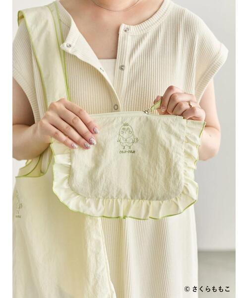 同系色の配色が魅力のフリルポーチ。お揃いデザインのパイピングトートと一に持ち歩くのも◎※商品画像は、撮影環境やお客様のご利用のPC・スマートフォンのモニター環境などにより実物と色味に差異がある場合がございます。
