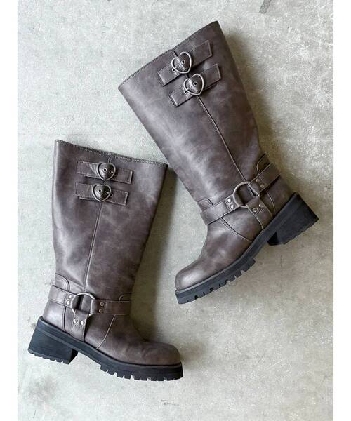 【CALNAMUR】2025 Autumn pre order 【Design】 ヴィンテージ感の加工感のあるフェイクレザーのマテリアルを使用したエンジニアブーツです。高すぎないちょこんとヒールなので、履き心地がとても良いです。CALNAMURらしく、ガーリーに仕上げる為ハートモチーフのバックルをデザインPOINTにしました。ブーツの口は程よいゆとり感があるので足の細見え効果も。おすすめはロングソックスと合わせてソックスをチラ見せさせるのが良いです。【Size】 S/M/L【Styling】 -------------------------------------------- 【CALNAMUR/カルナムール】 ブランドコンセプトは『優美な野心家』 それぞれが秘めている野心や希望、憧れを洋服として生活の一部に取り入れてもらえるよう、幅広いライフスタイルの方に着ていただけるブランド。 どこか可愛く、どこかヘルシー、ファッションを楽しみたい日のとっておきのワタシにプラスのAMOURを。 クリエイティブディレクター/藤田ニコル -《お気に入り登録》でお得な情報がいっぱい- ・商品のお気に入り登録 完売カラーの再入荷通知や、ラスト1点、セールの通知をお知らせいたします。 ・ブランドお気に入り登録 新商品や再入荷など、いち早くブランドの情報を受け取ることができます。 ≪Shopping Info≫ ※掲載画像の商品の色味は、屋外や屋内の光の照射や角度により実物と色味が異なる場合がございます。 スタジオでの詳細画像をご参照ください。 ※サンプルでの撮影の為、色味や仕様の変更点ございます、ご了承ください。 ※システムの都合上、販売価格と下げ札に1円誤差が生じる場合がございます。ご了承の上、ご購入をお願い致します。 ※生産の過程で1~2cm前後の個体差が生じる場合があります。 ※ご注文いただいた予約商品のお届け時期の確認は、注文履歴ページより行えます。★POINTエンジニアブーツ/バックル/秋服/冬服/春服