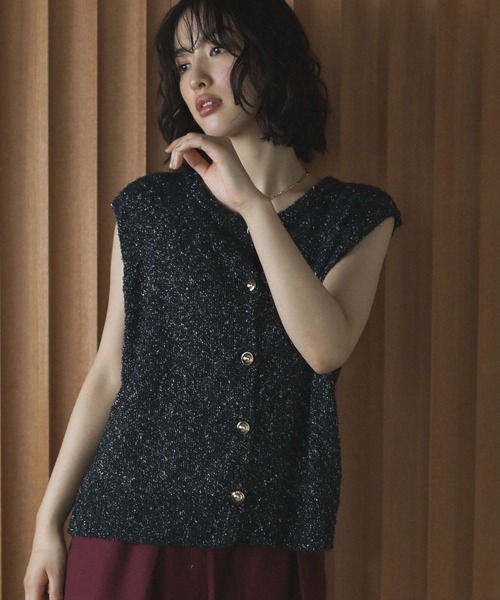 『ラメ感が彩る、ワンランク上のベストスタイル』■デザイン・フロントに並ぶ艶やかなゴールドボタンが洗練度をアップ・気になる二の腕を自然にカバーする、やや肩にかかるノースリーブ・毛足のあるニット地が表情豊かなツイード風ニュアンスを演出・シンプルなクルーネックで、インナー合わせもしやすい■素材・ラメ糸が織り込まれたコットン×ポリエステル×ナイロン混紡・ふんわりとした手触りながら、軽やかな着心地をキープ・シワになりにくく、デイリーにもお出かけにも気軽に使える素材感■カラー展開・明るい表情をプラスする「アイボリー」・引き締め感が欲しいときに活躍する「ブラック」・ニュアンスのある色合いでどんなコーディネートにも馴染む「グレー」■コーディネートブラウスやシャツと合わせて品の良いレイヤードスタイルに。きれいめパンツやロングスカートと組み合わせれば、オフィスカジュアルにも活躍します。■サイズ感身体にフィットし過ぎない程よいゆとりが、リラックスして羽織れるポイント。裾部分にリブをあしらっているので、すっきりと無理なくまとめられます。♦itemkeyword♦#秋服#秋アイテム#ツイードライク#ノースリーブベスト#ゴールドボタン#ラメ入りニット#着回し#デイリー#オフィスカジュアル#シワになりにくい透け感[なし]生地の厚さ[普通]光沢感[ややあり]伸縮性[あり]裏地[なし]ポケット[なし]※モデル着用画像は、光の当たり具合で色味が違って見える場合がございます。※お使いのモニター環境によって商品の色味が違って見える場合がございます。●Green Parks (fuuwa / topic / sara)●(グリーン パークス)20以上の人気ブランドを取り扱う、全国に約320店舗展開するアパレルセレクトショップ。ベーシックながらもさりげなくトレンドを取り入れたオリジナルブランドchocol raffine robeも展開。▼ 商品のお気に入り登録がおすすめです ▼商品ページ内のハートマークをクリック。完売時の再入荷や、最後の1点の通知、コーディネート画像がアップされたとき、お得なお値下げの際の通知を受ける事ができます。【お知らせ】ページでも通知が確認できます。