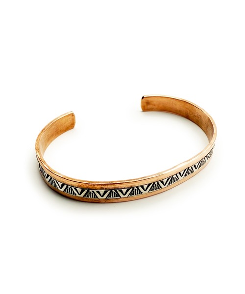 THEATER シアター ”ナバホ”ネイティブデザインシルバー&コッパーバングル Made in USA ◆THEATER Selectのハンドメイドブレスレット!!◆ ナバホ・ネイションアーティスト"Wylie Secatero"のコッパーとシルバー作られた少し太めのフラットブロンズバングルです。 重ね付けにも適しており、ユニセックスで使えるマルチなアイテムです。 裏には製作アーティストのサインが刻印されております。5つのデザインから選べるのも嬉しいポイントです。 ハンドメイドならではの、オーセンティックな風合いを楽しめるインディアンジュエリーです。 【ブランドコンセプト】 「この日常はあなたの物語です。」女の子も男の子も垣根のないジェンダーレスなアイテムを素材にこだわりセレクション。あなたの物語のポイントとなるアイテムをご提案します。 THEATERがアメリカでセレクトした、ハンドメイドインディアンジュエリーです。 注意事項 ※この商品は、全てハンドメイドで作られており、個体差がございます。 商品製造上、ギズ、若干の歪みなどがある事が御座いますので、ご了承下さい。 ※店頭及び屋外での撮影画像は、光の当たり具合で色味が違って見える場合があります。商品の色味は、スタジオ撮影の画像をご参照ください。