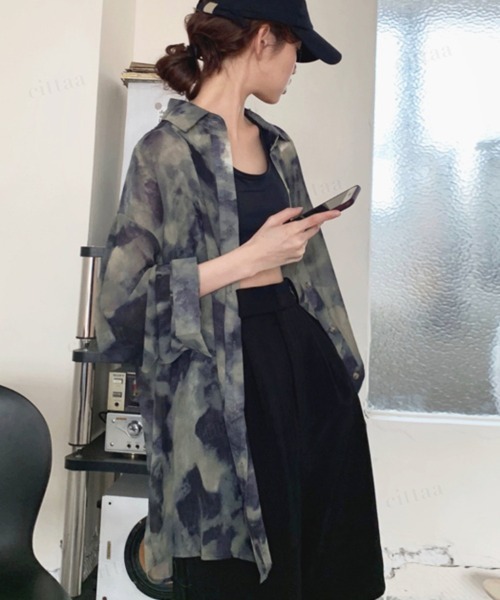【2025 Spring Collection】 程よい透け感が大人っぽいタイダイ柄シャツ ダークカラーでモードな雰囲気がお洒落! 全体に柄が入っているのでどの角度からも映えます ゆったりと着られるオーバーサイズでこなれ感も抜群◎ 体のラインを拾わず気になる部分をカバー ヒップが隠れる着丈で安心です。 ラウンドヘムでボトムにインしなくてもお洒落に決まります! サラリとした生地 トップスとしても、羽織としても使えるので着回し力も抜群です◎ ●detail ・生地の厚さは薄手です ・透け感あり ・シアー素材 ・サラリとした生地 ※撮影時のライティング、ご覧になっているスマートフォンやPC環境などにより 実際の商品と色が異なって見える場合がございます。 ※サイズは商品によって若干の誤差がある場合がございます。 予めご了承くださいませ。 ★【Dalfwin ダールフィン】 ワクワクするような最新 韓国ファッションを展開。 オーバーサイズスウェットやフーディー、セットアップ、Tシャツなどカジュアルアイテムを韓国よりセレクト。 ユニセックスITEM多数。ペアコーデも楽しめます。 ================================= ●お気に入り登録●でいつでもチェック! ▶お気に入り登録は、ハートマークをクリックでOK 完売カラーの再入荷通知、在庫ラスト1点の通知、セールの通知を受け取ることができます。 ▶ブランドのお気に入り登録 新商品がUPされたり売り切れ商品が再入荷したときなど、お得な情報を受け取ることができます。 =================================