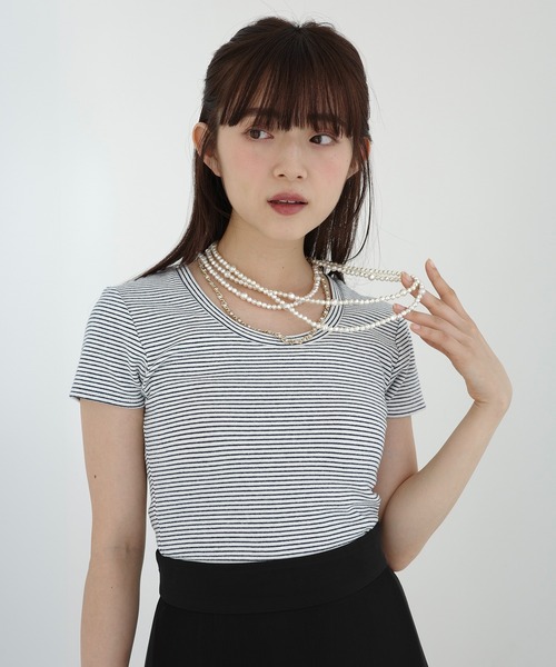 定番なのに新鮮。着るだけで旬顔ボーダーT【Design】顔まわりをすっきり見せるラウンドネックに、程よいピッチのボーダー柄がポイント。シンプルな中にも遊び心があり、一枚でコーデの主役になるデザイン。細身のシルエットが大人っぽく、カジュアルすぎない絶妙なバランスも魅力です。【Styling】デニムやチノパンに合わせて王道マリンスタイルはもちろん、キレイめボトムやキャミワンピのインナーとしても使える着回し力の高さが自慢!カーデやジャケットの差し色使いにもぴったりで、シーズンレスで大活躍。シンプルだけど「今っぽさ」も取り入れたい人におすすめの一枚です。【Fabric】しっかりしたコットン混のリブ素材。ボーダー柄でも伸縮性があり、フィットしすぎず程よく身体になじむ着心地。さらりとした肌触りと、洗濯してもヨレにくい丈夫さもポイントです。【Material】表地:綿96% ポリウレタン4%家庭洗濯可・ドライクリーニング可厚み:□薄手 ■普通 □厚手透け感:■なし □あり伸縮性:□なし ■あり裏地:■なし □あり注意:お使いのモニターによって、カラーが違って見える場合がございます。※素材・仕様は一部変更になる場合がございますので予めご了承ください。★《お気に入り登録》でお得な情報がいっぱい★・「商品のお気に入り登録」で再入荷通知や、ラストの通知、セール通知も受け取ることができます。・「ブランドのお気に入り登録」で新商品や再入荷など、お得な情報を受け取ることができます!【eimy istoire/エイミーイストワール】女性はみんな綺麗になりたいだからお洒落が大好きでやめられないそんな女性に贈る最高に美しい物語メーカー品番:1125412709