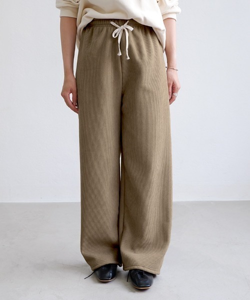 着た瞬間、もう脱ぎたくない。(サイズが選べる2タイプ) 【もこふわ裏ボアで冬も快適♪ウエストらくちんワイドパンツ】 ■商品の特徴 ふんわり裏起毛素材で脚全体をやさしく包み込む超あったかワイドパンツ。 ウエスト総ゴム+調節ひも入りでリラックス感たっぷり&サイズ合わせも簡単♪ ゆるっとシルエットなのに落ち感のある素材でだらしなく見えにくいのもポイント。 ■詳細説明 お好みで選べる、Mサイズ・Lサイズをご用意! ルームウェアとしてもワンマイルとしても活躍する万能アイテムです◎ ■生地・素材感 透け感:なし 伸縮性:ややあり(ウエストゴム) 生地の厚さ:厚手(裏ボア) 生地の柔らかさ:柔らかめ 裏地:裏ボア ポケット:なし ■素材・混率情報 ポリエステル95%、ポリウレタン5%(裏起毛) ■サイズ情報(cm) [M]ウエスト66、ヒップ100、股上33、股下67、着丈100、わたり巾58 [L]ウエスト68、ヒップ104、股上34、股下68、着丈102、わたり巾60 ■原産国 中国 ■コーディネート ビッグスウェットやニットと合わせてゆるっと旬コーデ♪ ショート丈トップスでウエストマークしてもバランス◎ ワンマイルからお出かけまで幅広く使えるあったかパンツです。 ■スタッフレビュー *女性/160cm/骨格ストレート/着用サイズ:L(普段S~Mサイズ着用) Mだとやや短めに感じたので、ゆったり着用できるLサイズを選びました。 部屋着用や高さのない靴と合わせることが多いならMサイズでも良いかもです。 *女性/152cm/骨格ストレート/着用サイズ:M(普段Sサイズ着用) ダボっとしすぎないストレートなシルエットなので、寒い日でも暖かくすごせます。 足首がしっかり隠れるくらいの丈感で、小柄な方でも長すぎずに着られます。 ■お気に入り登録 ★《お気に入り登録》でお得な情報がいっぱい★ ・「商品のお気に入り登録」で再入荷通知や、ラストの通知、セール通知も受け取れます ・「ブランドのお気に入り登録」で新商品や再入荷のお知らせが届きます! ※ご注意 ※生地や素材の性質上、2cm前後のサイズ誤差が出る場合がございます ※洗濯やクリーニングにより、多少縮む場合がございます ※濃色の商品は濡れると色移りする場合がございますので、雨天時のご着用洗濯後はご注意下さい ※素材の特性上、摩擦で毛羽立ちや毛玉ができる場合がございます ※パッケージ開封時に原料や染料のにおいがする場合がございます その場合、陰干しして頂くとにおいが薄まります ※商品画像は撮影時の光や角度により、実物の色味と異なって見える場合がございます ※撮影はサンプル品を使用しており、表示のサイズ感も実物とは若干異なる場合もございますので、予めご了承ください ※生産時期により色・素材・サイズ感など多少異なる場合がございます。予めご了承ください ※他のキャンペーンにより、期間中に価格が変動する場合があります