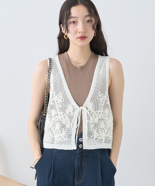 レイヤードスタイルに欠かせないベスト。 メッシュ素材にフラワーモチーフ刺繍を施したナチュラルで抜け感のあるデザインが魅力的です。 やや広めのアームホールで厚手のシャツなどもレイヤードしやすく、快適な着心地なのもポイント。 まだ暑さの残る時期から秋らしいスタイリングを楽しめるおすすめのアイテムです。 透け感[ややあり] 生地の厚さ[普通] 光沢感[なし] 伸縮性[ややあり] 裏地[なし] ポケット[なし] ※モデル着用画像は光の当たり具合で色味が違って見える場合がございます。商品の色味は物撮りの画像をご参照ください。 ● earth music&ecology ● (アースミュージック&エコロジー) 「いいことある服。」 たかが服。されど服。波風の多い日々のなかでもほほえんで前を向くあなたを、つつんで一緒に歩きたい。 いいことあるかも。そんな期待までまとえる服をあなたに。 earth music&ecologyは、毎日を頑張る女性たちをちょっと前向きにするブランドです。 ▼ 商品のお気に入り登録がおすすめです ▼ 商品ページ内の「♡」ハートマークをクリック。完売時の再入荷や、最後の1点の通知、コーディネート画像がアップされたとき、お得なお値下げの際の通知を受ける事ができます。 【お知らせ】ページでも通知が確認できます。
