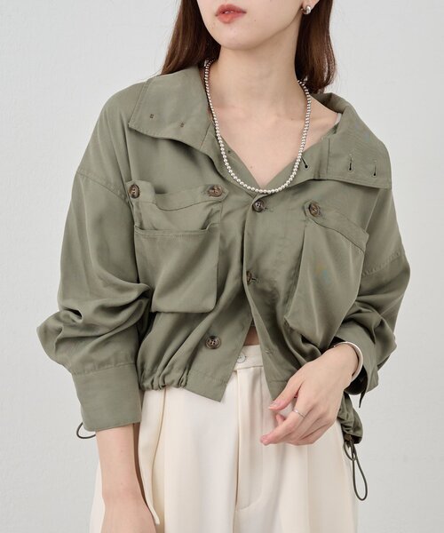 どこかミリタリー要素も感じるシャツ。トレンド感のあるクロップド丈の36サイズと腰回りまで長さのある安心感のある38サイズの展開です。落ち感のある素材が女性らしく着て頂けるようなデザインにしております。裾にドローコードがついているのできゅっと絞ればショート丈で肌見せして着るのも素敵です。ボタンを上から3つほど開けて、シャツ感覚できて頂くのがおすすめスタイルです。- - - - - - - - - - - - - - -透け感:オフのみややあり裏地:なし伸縮性:なし光沢感:なし生地の厚さ:普通取り扱い:手洗い可- - - - - - - - - - - - - - -※撮影環境により、光の当たり具合で色味が違って見える場合があります。あらかじめご了承下さい。※画像はサンプルの為、実際にお届けする商品と仕様が異なる場合がございます。※再生繊維(リヨセル)はソフトで肌触りが良く、吸湿性、染色性、ドレープ性等、優れた性質を持っています。この素材は水や湿気に弱い為、縮んだり色落ちする場合がございます。また、紫外線や、電光により変色する場合もございます。アイロンを直接当てることや、蒸気アイロンの使用は避け、手荒な取り扱いはしないでください。※素材の特性上、風合いを保ち、型崩れを防ぐためには洗濯はドライクリーニングをおすすめしますが、ご家庭での手洗いの際は次の点にご注意ください。※最初の洗濯で多少縮みます。ご了承下さい。尚、シワになり易いので当て布をし、裏からアイロンをかけて下さい。※摩擦により淡い色の物との重ね着や、イス、バッグ、ベルトなどへ色移りしますのでご注意ください。■「商品のお気に入り登録」でハートマークをクリックし、お好きなカラーを選んでお気に入りに登録すると入荷情報や残り1点の通知、完売カラーの再入荷、セール情報などを受け取ることができます。登録して頂いた商品だけが対象となる、あなただけのタイムセールが開催されることも!■「ブランドのお気に入り登録」で新商品や再入荷など、いち早くSHENERYのお得な情報を受け取ることができますので、ご登録をおすすめします!