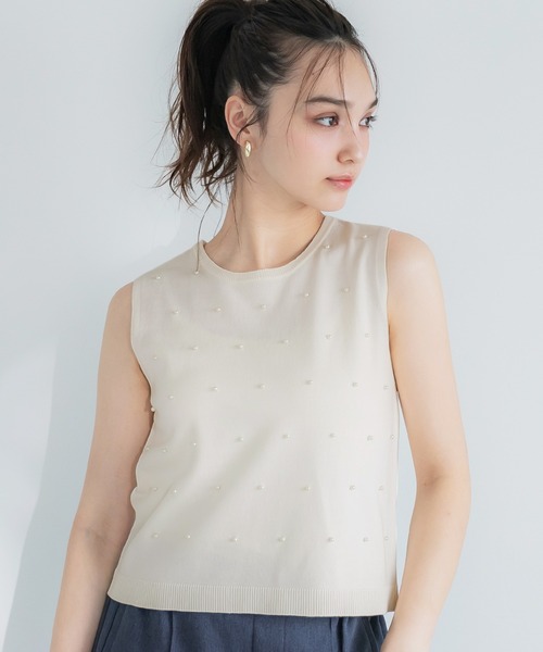 上品なきらめきをプラスする、大人のノースリーブニット ■デザイン・シルエット パール調のドットをあしらった、華やかさと上品さを兼ね備えたノースリーブニットです。 柔らかな肌触りのニット素材で仕立てられ、着心地も快適。 ちょうどいい丈感で、インでもアウトでもバランスよく決まります◎ ■素材 ・肌触りのよい薄手のニット生地 ・全面にパールをあしらい高見え効果 ■コーディネート お出かけにはもちろん、オフィスシーンでも活躍します。 スラックスやロングスカートに合わせてきれいめにも、デニムと合わせて大人カジュアルにも◎ シンプルながらも華やかさを演出できる、ワードローブに加えたい万能トップスです。 伸縮性:あり 透け感:ややあり 裏地:なし ポケット:なし 生地感:柔らかいニット生地 注意点:金属アレルギーなど体質により、皮膚への異常(かゆみやかぶれなど)が生じる場合がありますのでご注意下さい。 皮膚に異常を感じた場合は使用を中止し、専門医へ相談して下さい。 変色や錆びの原因となるため、汗や汚れなどを付着させたままの保管はお避け下さい。 素材やデザインによっては、強度が低いものがあります。 お洗濯方法によっては縮みや色あせの可能性あり。乾燥機等のご使用はお控え下さい。 ▼生地や素材の性質により2cm前後サイズ誤差が出る場合がございます。 ▼モデル着用写真は撮影環境により、多少実際のカラーと異なる場合がございます。 ▼色落ちの恐れがありますので、他のものと分けて洗って下さい。 ▼当商品は機械による生産の過程上、『生地を織る際の糸の継ぎ目』や多少の『ほつれ』、繊維の『混紡』、形やサイズに多少の『誤差』が生じる場合がございます。 トップス ニット ノースリーブ 袖なし クルーネック パール 装飾 伸縮性 シンプル きれいめ 25ss コカ COCA coca COCA coca