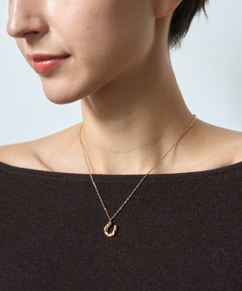 ホースシュー(馬蹄)モチーフを主役にした華奢なネックレスが登場。トップには、ほんのり波打つような立体的な彫り模様が施されており、シンプルな形状ながらも、光を受けるたびに表情が変化し、繊細で上品な輝きを放ちます。U字型のホースシューモチーフは、“幸運を受け止める”とされる縁起の良いシンボル。お守りのようにデイリーに身に着けたい、大人の遊び心と上質さを兼ね備えたアクセサリーです。ミニマルなチェーンとのバランスも絶妙で、1本使いでも重ね付けでもスタイリングしやすく、カジュアルからきれいめまで幅広く活躍するデザインに仕上がっています。【PETIT MOMENTS/プティ・モーメント】ロサンゼルスを拠点とするアクセサリーブランド。トレンド感とプライスバランスを重視したデザイン性の高いワードローブをグレードアップできるアクセサリーブランドです。【注意事項】※商品画像は、光の当たり具合やパソコンなどの閲覧環境により、実際の色味と異なって見える場合がございます。あらかじめご了承ください。※画像の商品はサンプルです。実際の商品と仕様、加工が若干異なる場合があります。※サイズ表記はあくまで目安となります。※その他の予約商品、通常商品との同時決済はできません。※入荷状況により、お届け予定が前後する場合があります。※お客様への発送が店頭販売より遅れる場合もあります。※追加生産商品は、一部の店舗、通販で販売中の場合がございます。予めご了承下さい。※商品を使用前に、タグ等に記載されている「取り扱い上の注意書き」「洗濯表示」を必ずご確認ください。※商品に不良が無い場合、包装紙および箱の彼損がございましても発送いたします。あらかじめご了承ください。
