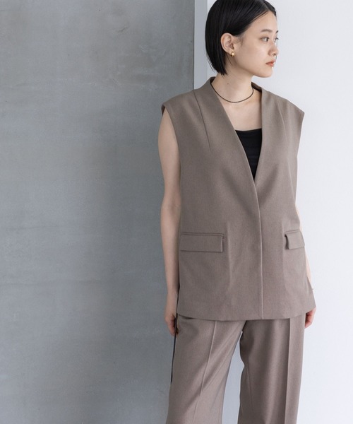 シワになりにくく、ピリングしにくい上質素材を使用した ラナテックシリーズ ーーー オンオフ兼用でも◎着こなしの幅が広がる一着 夏から秋まで長い期間使える、美シルエットにこだわったベスト ーーー 【デザインと特徴】 首元のすっきり見えが叶う、シルエットにこだわったノーカラーベスト。 ボリュームボトムとも、ナローシルエットにも合わせやすいヒップにかかる丈感と身幅に仕上げました。 腰回りのカバーを叶えつつも、もたつかず、すらっと見せてくれます。 艶のある素材を採用したベルトは、ウエストマークをした時にアクセントとなるブラックカラーに。 取り外しも可能です。 【素材特徴】 ”LANATEC LEI”(ラナテック レイ) やわらかな膨らみのある風合いが特徴で、上品な艶の質感を表現したファブリック。 ピリングをしにくく、しわになりにくい、お手入れ簡単で肌触りの良い素材です。 【スタイリング】 同シリーズのパンツと合わせてセットアップとしても◎ トップスのようにラフに一枚でも着用可能です。 Tシャツやワンピースの上から羽織ると、こなれ感のあるコーディネートに。 【洗濯可否】 ドライクリーニング推奨です。 ーーーーーーーーーーーーーーーーーーーーーーーーーーーーーーーーー 《インフォメーション》 ◆商品のお気に入り登録 ♡をクリックで気になるアイテムをお気に入り登録していただくと、 以下の通知を受け取ることができます。 ・入荷 ・再入荷 ・ラスト一点 ・セール対象時 ◆ブランドのお気に入り登録 新商品や再入荷、セール、クーポン配布などのお得な情報を受け取ることができますので、是非ご登録ください♪ 公式Instagram >>> 【@apartbylowrys 】 おすすめアイテムや新作情報、" ショップニュース "を更新中! ぜひフォローしてみてくださいね^^