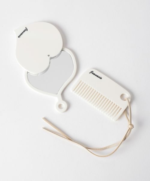 ーーー モードなカラー展開で日常使いしやすいミラーとクシのセット ーーー インパクトダイのハートモチーフ鏡とクシのセットアイテム。 かわいらしいモチーフを、JEANASISらしいモードなカラー展開に仕上げました♪ ミニポーチ付きで持ち運びしやすいところも◎ JEANASISのロゴがさりげないアクセントになっています。 日常使いはもちろん、プチギフトとしてもオススメです。 -INFORMATION- ◆お買い物をよりお楽しみいただく為に 『♡』をクリックしてお気に入り登録がおすすめ! ・完売カラーの再入荷通知や、ラスト1点の通知、セールになった際も通知を受け取ることができます★ ◆ブランドのお気に入り登録 新商品や再入荷など、お得な情報を受け取ることができますので、是非ご登録ください♪ ※屋外の光や照明の当たり具合で、実際の商品の色味とカラー別画像の色味に違いが発生する場合がございます。 商品の色味はスタジオ撮影の詳細画像にてご確認ください。