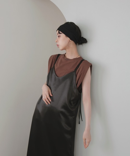 上品な光沢を放つサテン素材を使用した、Vネックデザインのキャミワンピ一枚で着映えしながらも、シンプルで洗練されたデザインが控えめで女性らしい印象を演出。サテンならではの落ち感とストレートシルエットが縦のラインを強調してスタイルアップ効果に◎ボディラインを拾わないサイズ感で、着用感はゆったりしつつも大人っぽく上品に仕上がる一着です。フロントのVネックラインが顔周りをすっきりと見せてくれて、女性らしいデコルテラインをきれいに引き立ててくれます。肩紐をあえて長めに仕立てることで他にはない洒落感をプラス。肩ひもは後ろのループに通して結んで調節が可能です。後ろスリット入りで足さばき楽ちんなのも嬉しいポイント◎スリットがあることでロング丈でも軽やかに着こなせて、さりげない抜け感に。Tシャツやシアートップスとのレイヤードはもちろん、インナーを変えて季節を問わず着ましが効きます!アクセや小物で雰囲気を変えれば、デイリーからちょっとしたお出かけにも幅広く対応。1枚で着こなしが完成する、頼れる万能アイテムです◎------------裏地 なし透け感 なし伸縮性 なし光沢 ありポケット なし洗濯方法 手洗い可------------【スタイリング】ツヤ感のあるサテンキャミワンピにTシャツを重ねれば、カジュアルさと女性らしさが絶妙にミックスされた着こなしを楽しめます。アメスリタンクをインナーに仕込めば、ヘルシーな肌見せでグッと今っぽい雰囲気に◎秋冬はシアーニットやカーディガン、ニットを羽織ってロングシーズン活躍。合わせるアイテム次第で、カジュアルからキレイめまで自在に着まわせます。スニーカーやキャップを合わせれば、抜け感のある大人のラフスタイルが完成。Vネックデザインのため、ネックレスやイヤリングなどのアクセも映えること間違いなし!※お使いのモニター設定、お部屋の照明等により実際の商品と色味が異なる場合がございます。物撮り写真はできる限り実物の色に近づけるようにしておりますので、色に関しては商品の物撮り写真をご参考ください。▼もっとお買い物を楽しんで頂く為に▼〈商品のお気に入り登録〉お気に入りの登録をして頂きますとセールの通知・ラスト1点になった時の通知や、再入荷通知を受けることができます。〈ブランドのお気に入り登録〉新商品の発売や再入荷、タイムセールやクーポン発行のお知らせなどLIANがお届けするお得な情報を受け取ることができます。