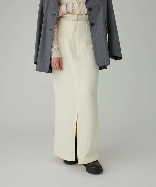 2025 AUTUMN COLLECTION 前後のスリットが印象的な、すっきりロングスカート ーーー ◆DETAILポイント◆ ・前後のスリット開きが印象的な、ロングナロースカート。 ・スリット開きで裾回りを削ることで、シャープな縦長シルエットを実現。 ・アセテートの持つ良さを最大限に発揮したシルキーなタッチ、美しいドレープ性が特徴。 ・ウエストの後ろ中心にゴムギャザー、前後に入った長めのダーツなどで、楽ちんな履き心地でありながら腰回りがスッキリ見え。 ・両脇のメロー始末もさりげないポイント。 ・アイボリーには裏地が付いており、安心して着用可能。 ーーー ◆FABRICポイント◆ ・上品な光沢のアセテートギャバジンを特殊加工で仕上げることで、表情感とカジュアルな雰囲気に落とし込んだ素材。 ・経糸も甘撚りにすることで、膨らみがあり程よい落ち感も持ち合わせているのが特徴。 ・さらっとした肌触りでシーズンレスに着用可能。 ◆コーディネート提案◆ ・トップスを選ばない万能スカート。お好みのトップスで合わせてOK。 ・ベルトを巻いてウエストマークするのもおすすめ。 【BABYLONE / バビロン】 "Be myself" 好きな色 好きなかたち 好きな着こなし 自分の好きは自分だけが知ってる 自分らしい自分を好きでいたい 時代のニュアンスを取り入れながらも まわりにとらわれない ブレないしなやかな女性たちへ 【気になる商品は「お気に入り」登録を】 ハートマークをクリックし、お好きなカラーを選んでお気に入りに登録すると 在庫残り僅かの通知、再入荷通知などの情報を受け取ることができます。 ※商品の取り扱い方法につきましては、タグ等に記載されている「取り扱い上の注意」「洗濯表示」をご確認ください。 ※屋外での撮影画像は、光の当たり具合で色味が違って見える場合があります。あらかじめご了承ください。なお商品の色味は、スタジオ撮影の画像をご参照ください。