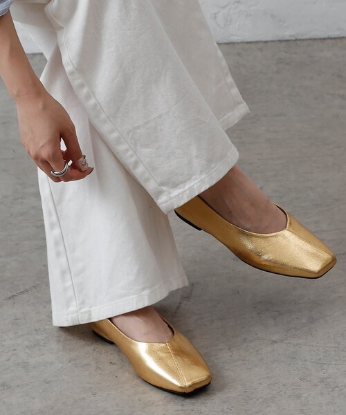 【リュクスな輝きが魅力のメタリックフラットシューズ】洗練されたスクエアトゥと、上品なメタリックの輝きが目を引くメタリックフラットシューズ。無駄をそぎ落としたミニマルなデザインと深みのあるこだわりのメタリックカラーがの大人のこなれ感を演出します。スクエアトゥのデザインは、トレンド感がありながらも上品でクラシカルな印象に。足への負荷がかかりにくい柔らかいインソールを使用し、フラットソールなので、長時間履いても疲れにくくデイリー使いに最適です◎カラーは、華やかで都会的な印象ゴールド、肌なじみが良く上品で落ち着いた印象ブロンズ、深みのあるカラーで洗練された印象ネイビーの3色をご用意しました。通勤・通学などの普段使いから、お出かけや旅行まで、幅広いシーンで活躍してくれること間違いなし。一足持っているだけで、コーディネートの幅がぐっと広がる、優秀アイテムです。インソールの爪先部分にはバクテシャット®という制菌・消臭加工のある素材を使用しています。【商品ポイント】・メタリックカラーで、足元に旬な輝きをプラス・クエアトゥデザインで、トレンド感を演出・フラットなデザインで、歩きやすさも◎・普段使いからお出かけまで、幅広いシーンで活躍・コーディネートのアクセントになる、主役級アイテム・インソールの爪先部分は制菌・消臭加工のある素材----------------------------------------------------■素材甲材: 合成皮革底材: 合成底----------------------------------------------------※着用、お取り扱いの際は、商品についている品質表示とアテンションタグを必ずご確認下さい。※商品タグに記載されている商品名がWEBでの表記名と異なる場合があります。※実際の商品と仕様、加工、サイズが若干異なる場合がございます。※照明の関係により、実際よりもやや明るく見える場合がございます。またパソコンなどの環境により、若干製品と画像のカラーが異なる場合もございます。予めご了承くださいませ。【お気に入り登録】してお得な情報をCHECK!!・「商品のお気に入り登録」で再入荷通知や、ラストの通知、セール通知も受け取ることができます。・「ブランドのお気に入り登録」で新商品や再入荷など、お得な情報を受け取ることができます。