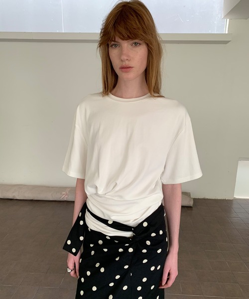""国内でCHUCLLAだけが、正規取扱いする新ブランド【LONSLAN】""シンプルな中にアクセントを効かせた、ツイストデザインTシャツ 伸縮性のある柔らかい素材で着心地も抜群。 カジュアルにも、抜け感のあるモードにもマッチするアイテムです。 体に自然と沿うシルエットなので、ウエストラインを程よく強調しつつ、リラックス感もキープ。 デニムやスラックス、ワイドパンツなど、どんなボトムとも好相性。 シンプルながら周りと差がつく、ワードローブに加えておきたい一着です。 【LONSLAN】 ・simple=時代に左右されない普遍的な美しさ ・comfortable =快適な素材を使用し、どんなシーンでもリラックスして過ごせるアイテム ・free=自由を感じられるデザイン、日常の中に自然に溶け込むスタイル 詳細補足 仕様:かぶり着用 / サイドギャザー 伸縮性:あり 透け感:(ホワイトのみ)ややあり 光沢:なし 裏地:なし 厚さ:普通 サイズ感:標準 instagram→lonslan_official 取扱注意事項 ※サイズは、測定方法と測定者によって多少の誤差がありますのでご了承下さいませ。 また体型によって、サイズ感に個人差がございます。(平置き採寸) ※商品によってはシワがつきやすく、畳みジワや折りジワなどが強く出る場合がございます。 その際は加湿した風呂場に数時間干すか、スチームアイロンでのお手入れをお勧めしております。 ※生地の素材上、においが気になる場合がございます。 その際は陰干しして頂くと、ほとんど感じにくくなります。 ※レース等の繊細な素材を使用している場合には、お取り扱いにご注意下さい。 ※デニムを使用した製品は、インディゴ染めをしています。 汗や摩擦により移染しやすいので、白色、淡色の組み合わせや重ね着はお避け下さい。 ※ニット素材を使用した製品は、重みで伸びやすくなりますのでハンガーでの保管はお控えください。 ※お洗濯の際には、品質表示の指示に従ってください。必要であれば専門店にご相談ください。 家庭でご洗濯できる商品に関しては、洗濯専用ネットをご使用の上、個別での洗濯をお勧めいたします。 お色物は、色移りする可能性がございます。 ※着用画像は撮影状況や光によって、多少異なる場合がございますので、置き画像をご確認下さい。 ※2023年7月1日より、環境に配慮した取り組みの一環として、紙のアテンションタグを廃止しております。