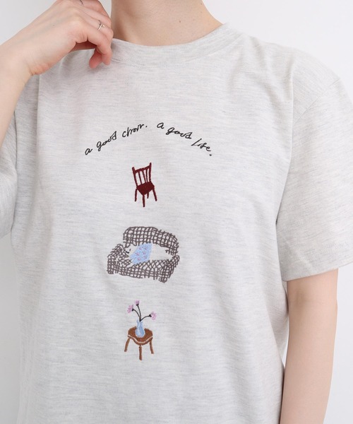 イス集めが好きな人のおうちの景色を刺繍しました。すきなものに囲まれることがやっぱり癒しをくれる、豊かな一日。ソファーの輪郭を刺繍することで、すやすや眠るにゃんこを描きました。秋らしいトーンの配色はまだ続く夏のTシャツの気分を少し変えてくれそう。カラー展開:ホワイト、オフホワイト※撮影に使用している商品はサンプルです。実際の商品と仕様、加工、サイズが若干異なる場合がございます。サンプルからの変更点:猫の表情がわかりやすく変更になります。正しい刺繍は参考画像をご覧ください。※光の関係で実物の商品の色味とは若干異なる場合がございます。実際に近い色味は詳細画像をご参照下さい。※取り扱いの注意については取り扱い表示をよくご確認の上、着用をお願いいたします。【素材の特性、お取り扱いの注意】・この製品は刺繍をほどこしておりますので、刺繍部分を乱暴に扱いますと破損しやすく、強い摩擦や洗濯には十分注意してください。また、配色使いになっておりますので、長時間水につけておいたり、濡れたまま放置しておりますと、淡色部分に移染することがありますのでご注意ください。・刺繍部分アイロン禁止・この製品を洗濯する際には多少縮む場合がありますので、形を整えてから日陰で干して下さい。l'atelier du savon(アトリエドゥサボン) CONCEPT 1つ1つにかけられた手のぬくもり日々の生活に、少しのデザインを加えた大人の日常着あそび心とあたたかみ