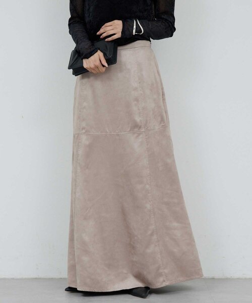 \シーズンはじめにオススメ!/ クラス感漂う大人のためのフレアロングスカート ●女性らしくも洗練されたフレアスカート。 ●柔らかさと洗練さを併せ持つフェイクスエード素材。 ●切替デザインでメリハリのあるシルエットが実現。 ●ウエスト後ろ部分がゴムで履きやすさとキレイ見えを両立。 ●シャツやざっくりニット、コンパクトトップスなど着回し力抜群の1枚。 ●同素材のシャツとセットアップでの着用もおすすめ。 ■手洗い不可(詳しくはクリーニング店へご相談ください。) ■透け感:なし ▼セットアップ対応商品 GGZ1052204A0007 フェイクスエードシャツ ※画像の商品はサンプルです。 実際の商品と仕様、加工などが若干異なる場合があります。 また、生産過程上の都合により、洗濯表記や混率、サイズスペック等が多少変更になる可能性がございます。 予めご了承ください。 ※トップの画像は、光の具合で色味が違って見える場合があります。 ◆気になる商品は「お気に入り」登録を◆ ハートマークをクリックし、お好きなカラーを選んでお気に入りに登録すると 入荷情報や残り1点の通知、完売カラーの再入荷、セール情報などを受け取ることができます。