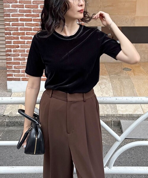 ◇fredy emue◇【2025 SS】夏でも快適に着用できるベロアTシャツ●point・柔らかな手触りが魅力のベロア素材を使用した半袖Tシャツです・シンプルながらも上品な素材感で、カジュアルな日常使いからちょっとしたお出かけまで幅広く活躍します・後ろのブランドロゴプレートがさりげないワンポイント!・程よくゆとりのあるシルエットで、ストレッチ性のある素材を採用・裏面はサラッとした生地感なので、夏でも快適に着用いただけます・1枚での着用はもちろん、シャツやジャケットのインナーとしても相性抜群のアイテムです透け感:あり裏地:なし伸縮性:あり光沢感:ややあり洗濯:手洗い可●お取扱い上のご注意●*商品を長くご愛用していただきたいため、アテンションタグがある場合は必ずご確認の上、着用又はお取り扱い下さい。*画像の商品はサンプルとなりますので実際の商品と仕様(主にファスナー・釦等の付属品)、加工、サイズが若干異なる場合がございます。*店頭及び屋外での撮影画像は、光の当たり具合で色味が違って見える場合があります。商品の色味は、スタジオ撮影の画像をご参照下さい。*商品画像に関しては出来る限り忠実に表示出来るよう努めておりますが、お客様がご利用のモニターの設定及び特性により、実際の商品と比較し色味に若干の誤差が生じる場合があります。*製品洗い加工の商品は、多少の歪み、シワなどが見られたり、風合いやサイズ等が1枚1枚異なります。汗や雨等で濡れた時や、摩擦により色落ちし、他の衣料を汚すことがありますので(特に濃色のもの)ご注意ください。◇商品のお気に入り登録◇気になる商品は、お気に入り登録がオススメです!クーポン情報、入荷情報が、通知されるようになります。
