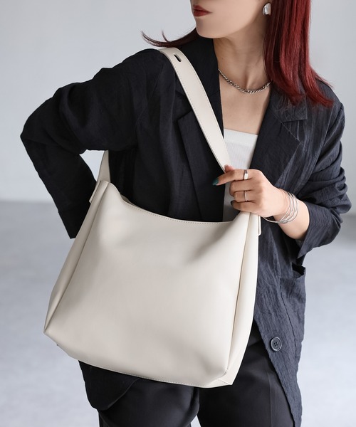 【Riberry ポーチ付きワンハンドルトートバッグ】 \A4サイズも入る!/ 洗練されたシンプルなワンショルダーバッグ♪ やわらかな光沢感のある合成皮革で仕立てた、クリーンな印象の大容量バッグが登場しました。 A4サイズも横にすっぽり入る程よい大きさの収納力でデイリー使いにもぴったりなモードなデザイン。 ショルダーストラップ(持ち手)は5段階で長さ調整が可能で、肩掛けも手持ちスタイルも気分やスタイルに合わせて自由にアレンジできます♪ さらに小物整理に便利なポーチ付きでバッグの中身をすっきりとまとめられるのも嬉しいポイントです! きれいめコーデはもちろん、カジュアルなデニムやスウェットスタイルの引き締め役にもおすすめ◎ お出かけから通勤までどんなシーンでもそっと寄り添う、万能アイテムです! ・裏地なし ・内ポケットなし ・ショルダーなし ・ポーチ付き ・合成皮革 ※この商品は生産時期によりカラー等に個体差が生じることがございます。予めご了承ください。 ※この素材は摩擦(特に湿った状態での摩擦)や雨、汗でぬれた際には他の衣料等に色が移ることがございますのでご注意ください。 ※その他詳しい取扱いについては商品付属のタグ及び品質表示をご覧ください。 【Information】 ◆《お気に入り登録》がオススメ◆ ・「商品のお気に入り登録」で再入荷通知や、ラストの通知、セール通知も受け取ることが出来ます。 ・「ブランドのお気に入り登録」で新商品や再入荷など、お得な情報を受け取ることが出来ます ※撮影時のライティング、太陽光、ご覧になっているモニター・PC環境により、実際の商品と色味が異なって見える場合がございます。予めご了承をお願い致します。