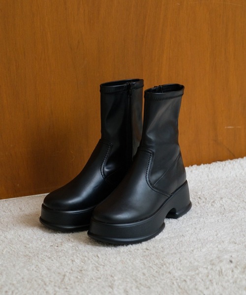 足元にトレンド感と安定感をもたらす、ボリュームソールのミドルブーツ※ブラック・ダークブラウン:フェイクレザー ベージュ:フェイクスエード■デザインころんと丸みのあるトゥと、存在感のある厚底デザインで、スタイリングにモードなアクセントをプラス。スカートにもパンツにも合わせやすい丈感で、季節を問わず活躍します。フェイクレザーとフェイクスエード、異なる質感で表情の違いを楽しめる2タイプ展開。■素材:【ブラック・ダークブラウン】合成皮革【ベージュ】合成繊維(フェイクスエード)【底材】合成底※サイズ採寸は各モールによって異なり、多少の誤差が生じる可能性がありますのでご了承ください。※商品画像はサンプル品を使用しているため、実際の商品と仕様、加工、サイズが若干異なる場合がございます。また、可能な限り実物に近いカラーにて掲載していますが、使用しているパソコンのモニター設定や、携帯電話のメーカー・機種により実際のカラーと異なって見える場合がございます。予めご了承ください。▼商品のお気に入り登録ハートマークをクリックし、お好きなカラーを選んでお気に入りに登録完売カラーの再入荷通知や、ラスト1点の通知、セールの通知も受け取ることができます。▼ブランドのお気に入り登録新商品や再入荷等、いち早くブランドのお得な情報を受け取ることができます。<返品・キャンセルについて>・着用・洗濯後の返品・ご交換は致しかねます。・商品到着後、着用前に商品を確認して頂きますようお願い致します。