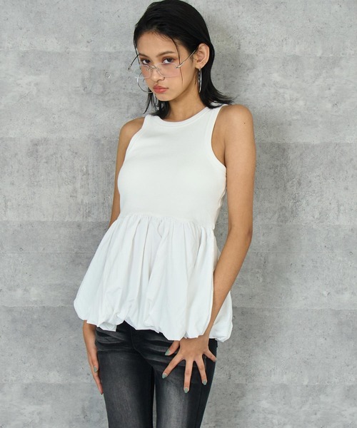 一枚で着映える、カップ付きバルーントップス ●ラクさも可愛さも妥協したくない日にはこれ。 ●バルーンシルエットのふんわり感が、自然と華やかさを演出。 ●カップ付きだからインナーいらずで、そのままさらっと着られるのも嬉しいポイント。 ♦detail 伸縮性のあるリブ素材のタンクトップに、立体感のあるバルーンデザインの裾をドッキング。 ウエストまわりをふわっとカバーしながら、女性らしいバランスで着こなせる一枚です。 内蔵カップ付きなので一枚で着られて、暑い季節にも快適。 カラー展開もベーシックで着回し力抜群です。 ♦styling 〇甘さ控えめカジュアル→デニムと合わせて、ヘルシーで抜け感のある着こなしに。 〇フェミニン→細身のパンツにパンプスを合わせれば、きれいめにも対応。 〇トレンド感重視→カーゴパンツやボリュームスニーカーでY2Kテイストに寄せるのもおすすめ。 ♦コーデにオススメ サイドライン ストレート スラックス パンツ(152-5809) インパンツ付き ミニ スカート(151-5728) ----------- 伸縮性・・・本体のみあり 透け感・・・ホワイトのみ若干あり 光沢感・・・なし 生地の厚さ・・・厚め ポケット・・・なし 裏地・・・あり ----------- ※ウエストゴムあり※パッド付き(取り外し可能) ※リブ素材のため、伸縮性があり記載しているサイズと若干異なる場合がございます。予めご了承ください。 ※商品のお取扱いに関しましては、商品に付属のアテンションカード、洗濯ネームをご覧ください。 ※モデル着用画像は光の当たり具合で色味が違って見える場合がございます。 ※商品の色味の目安は、商品単体の画像をご参照ください。 【お買いものをお楽しみいただく為に!】 ▼商品のお気に入り登録 完売カラーの再入荷通知や、ラスト1点の通知、セールの通知も受け取ることができます。 ▼ブランドのお気に入り登録 新商品や再入荷など、いち早くブランドのお得な情報を受け取ることができます。