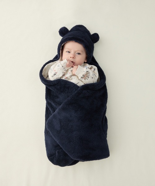 【素材】外側はボリュームたっぷりで、毛足の長いポリエステル100%のボアフリース。赤ちゃんに触れる内側にはなめらかな肌ざわりの綿100%天竺素材を採用。寒い季節にも重宝する軽くて温かい素材です。【カラー・柄】ネイビー、グレーピンク、ライトベージュの合わせやすく、使いやすい3色展開です。内側のレトロなおもちゃの総柄が上品な印象を与えます。ボアフリースのシリーズでベビーからキッズまで幅広く展開しているので、是非ご一緒にお使いください。 【仕様】クマ耳フードがキュートな定番ボアのふわふわおくるみ。寒い日のお出かけやお昼寝時のブランケットとしても役立つアイテムです。 【ポケット】なし 【伸縮性】あり 【透け感】透けない 【クリーニング】洗濯機洗い可 【裏地】なし モニター・環境等により実際の商品と色味が多少異なって表示される場合がございます。 また、生産時期により色味が若干異なる場合がございます。予めご了承ください。