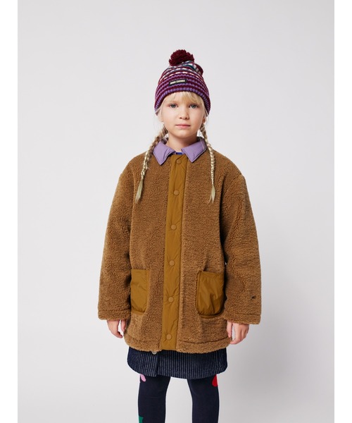 ライトブラウンの落ち着いたカラーが魅力のコート。平らな襟にロングスリーブ、スナップボタンのフロント開閉といったシンプルなデザインに、異素材の切り替えや刺繍のアクセントを効かせた一着です。膝下まで届く長めの丈感とゆったりとしたリラックスフィットで、重ね着しやすく秋冬のコーディネートに活躍。左側に配されたパッチポケットはデザインと実用性を兼ねています。裏地にはリサイクル素材を使用しており、環境にも配慮。パンツにもスカートにも合わせやすく、デイリーからお出かけまで幅広いシーンで活躍します。組成:– 表地:リサイクルポリエステル 100%– 身頃裏地:リサイクルポリアミド 100%、リサイクルポリエステル 100%原産国:中国